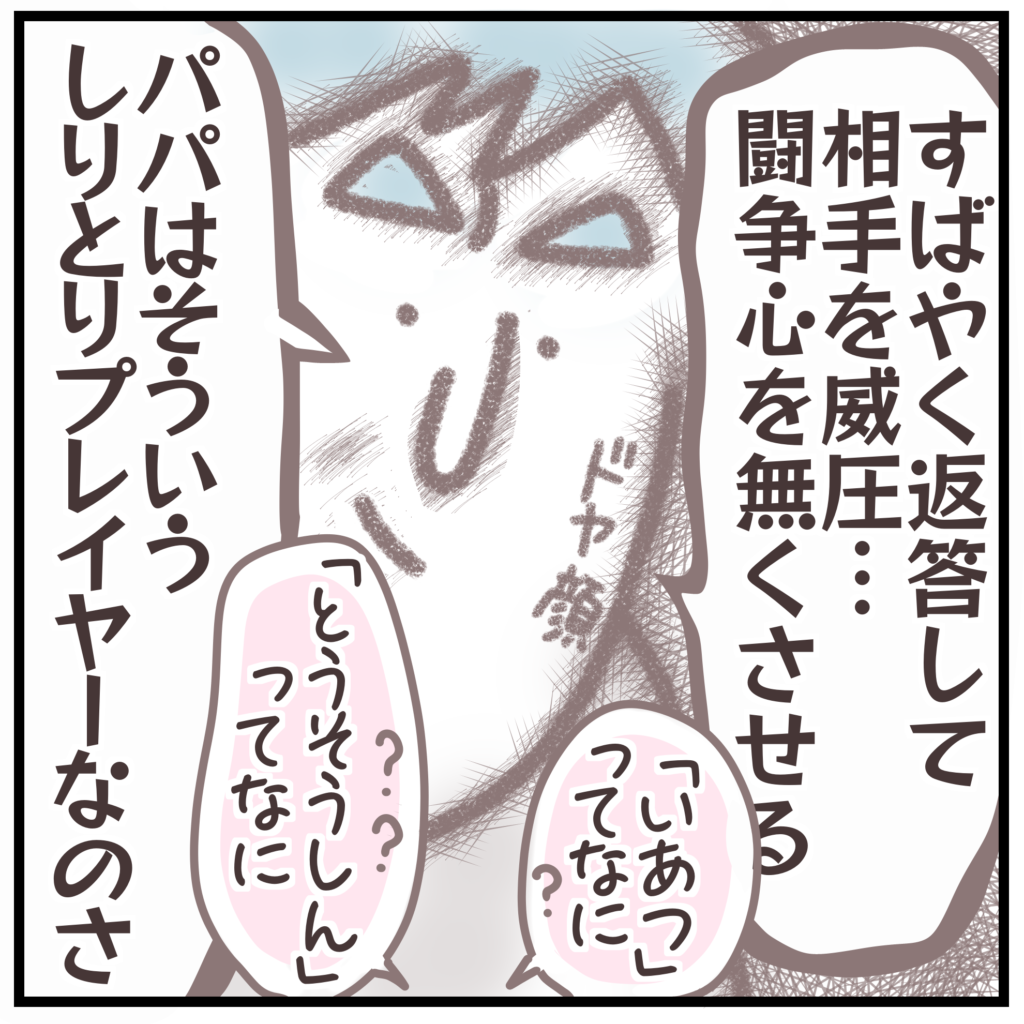 「パパはね、そうやって相手を威圧するしりとりプレイヤーなのさ」と宣言。