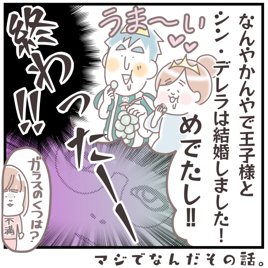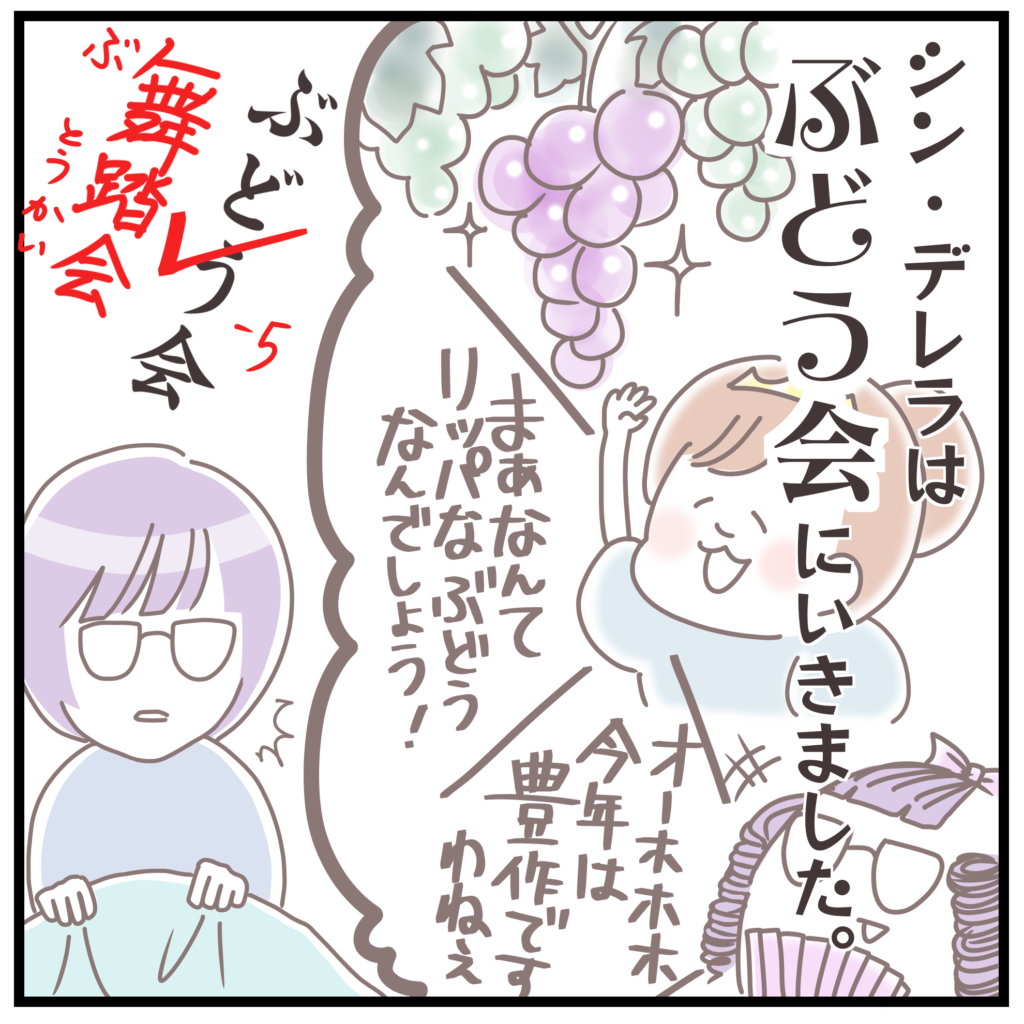 舞踏会💃がぶどう会🍇になり、なぜか王子はパパだし、魔法なんてそんなもんは無いし、全員???状態。