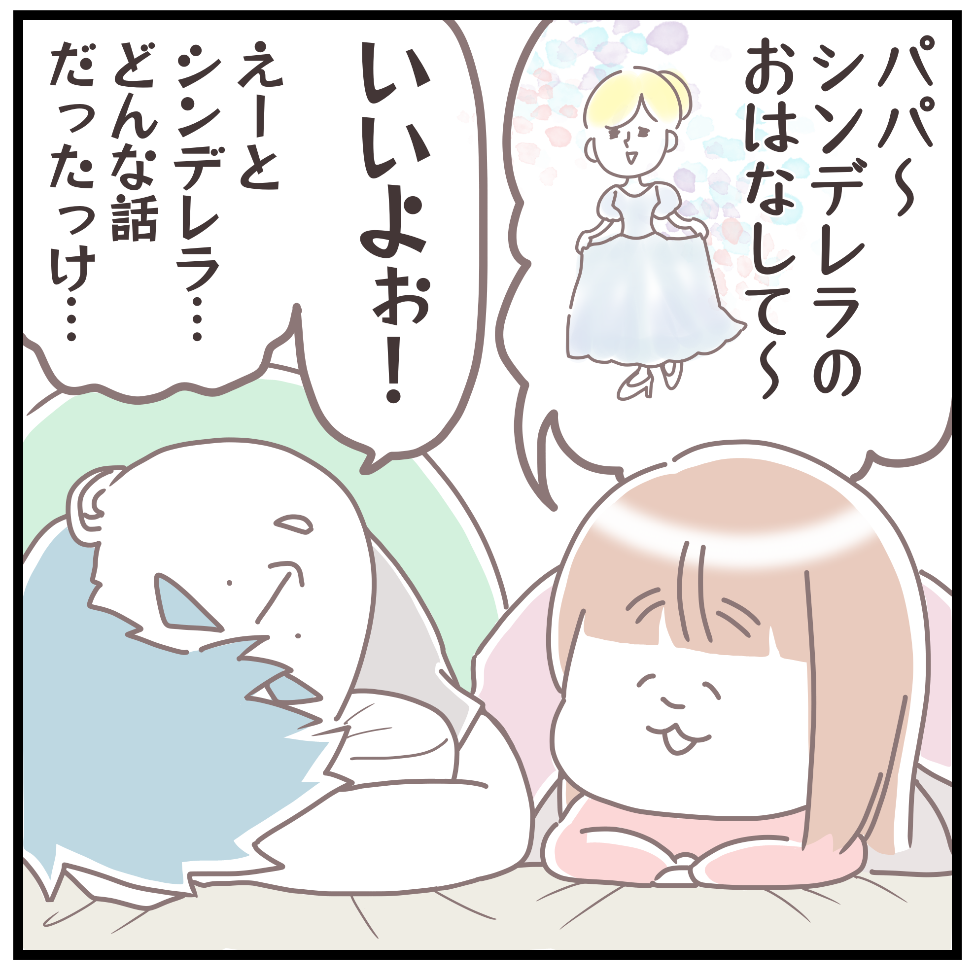 パパが娘に「シンデレラ」のお話をしてくれたのですが、あまりにも記憶がうろ覚えで、ストーリーがどんどん迷子に。